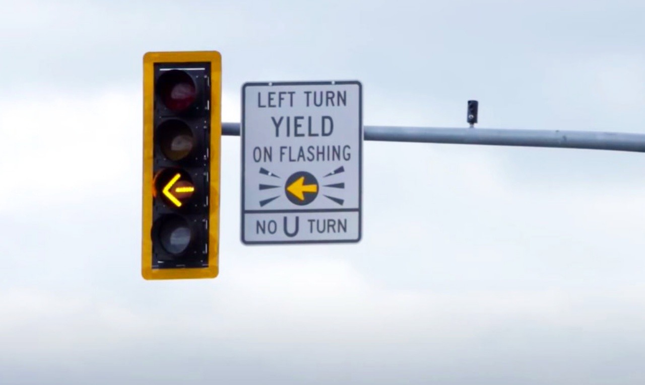 Americké mesto Roseville v Kalifornii začalo na križovatky montovať nové semafory s blikajúcou žltou šípkou pre odbočenie vľavo a dnes ich má už na 12 miestach. Keď šípka bliká nažlto, vodič môže odbočiť vľavo, ale musí dať prednosť protiidúcim autám a cyklistom, ktorí majú súčasne klasickú zelenú.