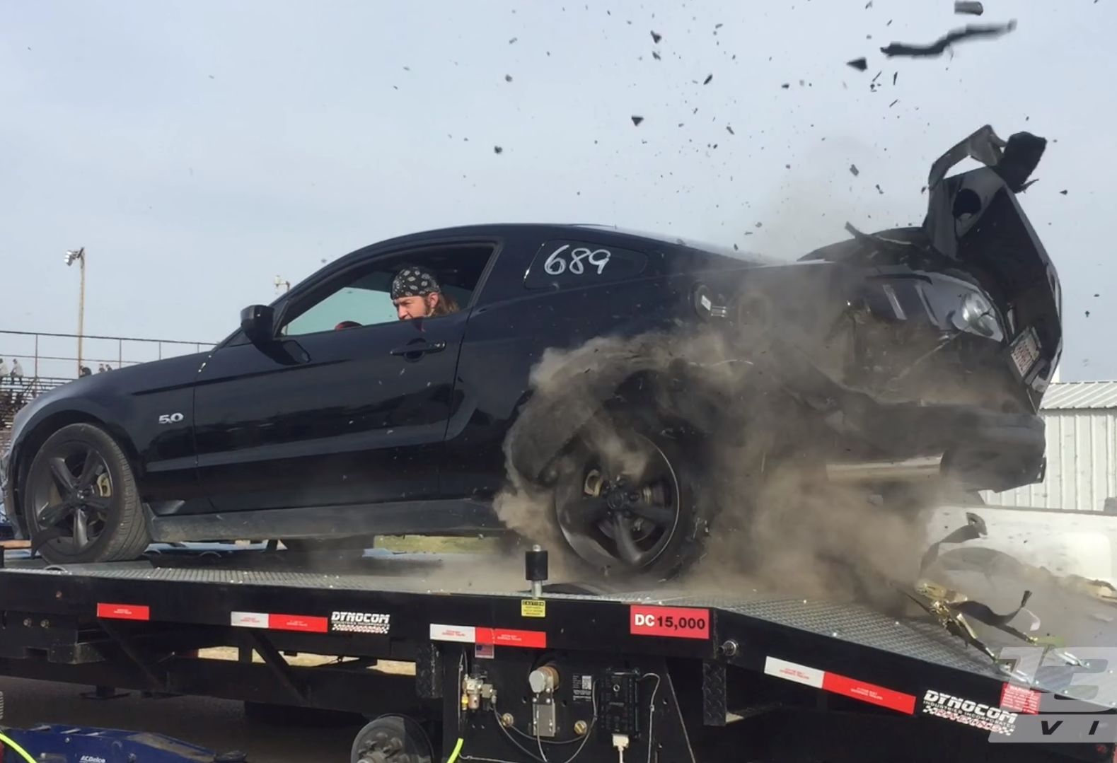 S istotou nič pozitívne. Prasknutie pneumatiky je nepríjemné, či už pri jazde, alebo aj na valcovej brzde. O druhom menovanom sa presvedčil vodič Mustangu, ktorému nevydržala guma v rýchlosti okolo 250 km/h. Rana to bola poriadna... Výbuch natlakovanej a roztočenej pneumatiky spôsobil zlomenie disku, poškodenie blatníka a nárazníka. Spomalený záber na celú udalosť nájdete v čase 1:45. Majiteľ auta sa všetkému prizeral zvonku, ale vzal to športovo a auto ponúkol okamžite na predaj, :-)