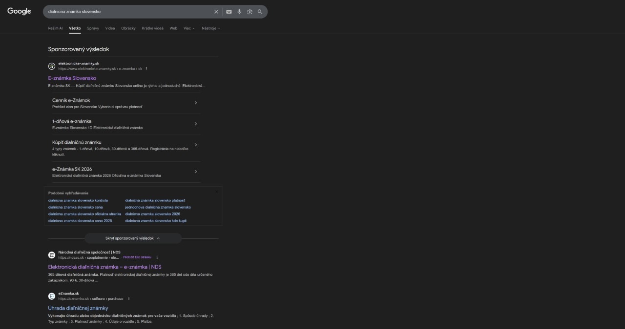 Že ak do Google vyhľadávania zadáte „dialnicna znamka slovensko“, ako úplne prvý výsledok sa zobrazí práve neoficiálna stránka, ktorá ročnú známku predáva o celých 29 € drahšie.