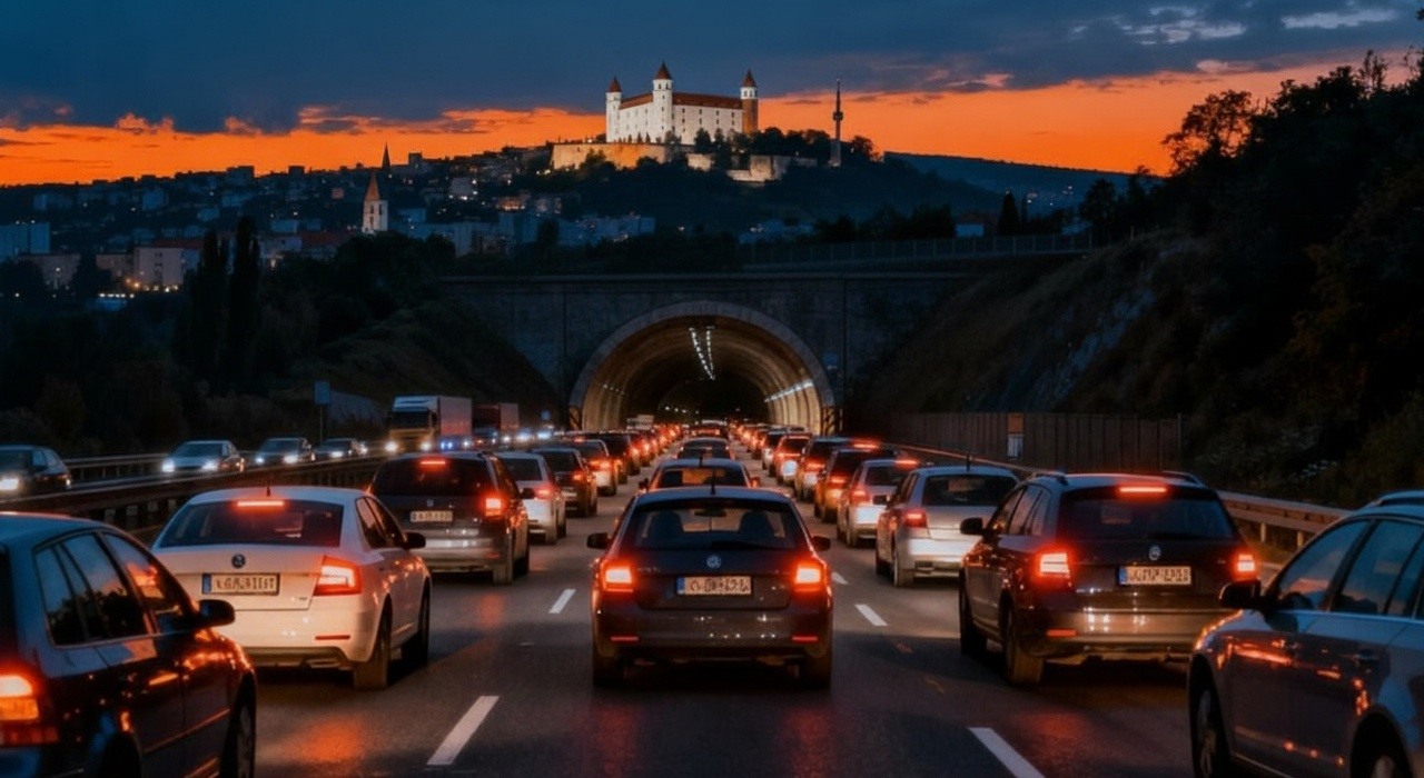 Úsek D2 pri tuneli Sitina je extrémne náchylný na akékoľvek obmedzenie, pretože tu prichádza tranzit zo západu aj severu. Ak sa na tomto mieste niečo stane – nehoda, údržba, výmena protihlukovej steny – Bratislava jednoducho nemá kam „odpustiť“ prebytočné autá.