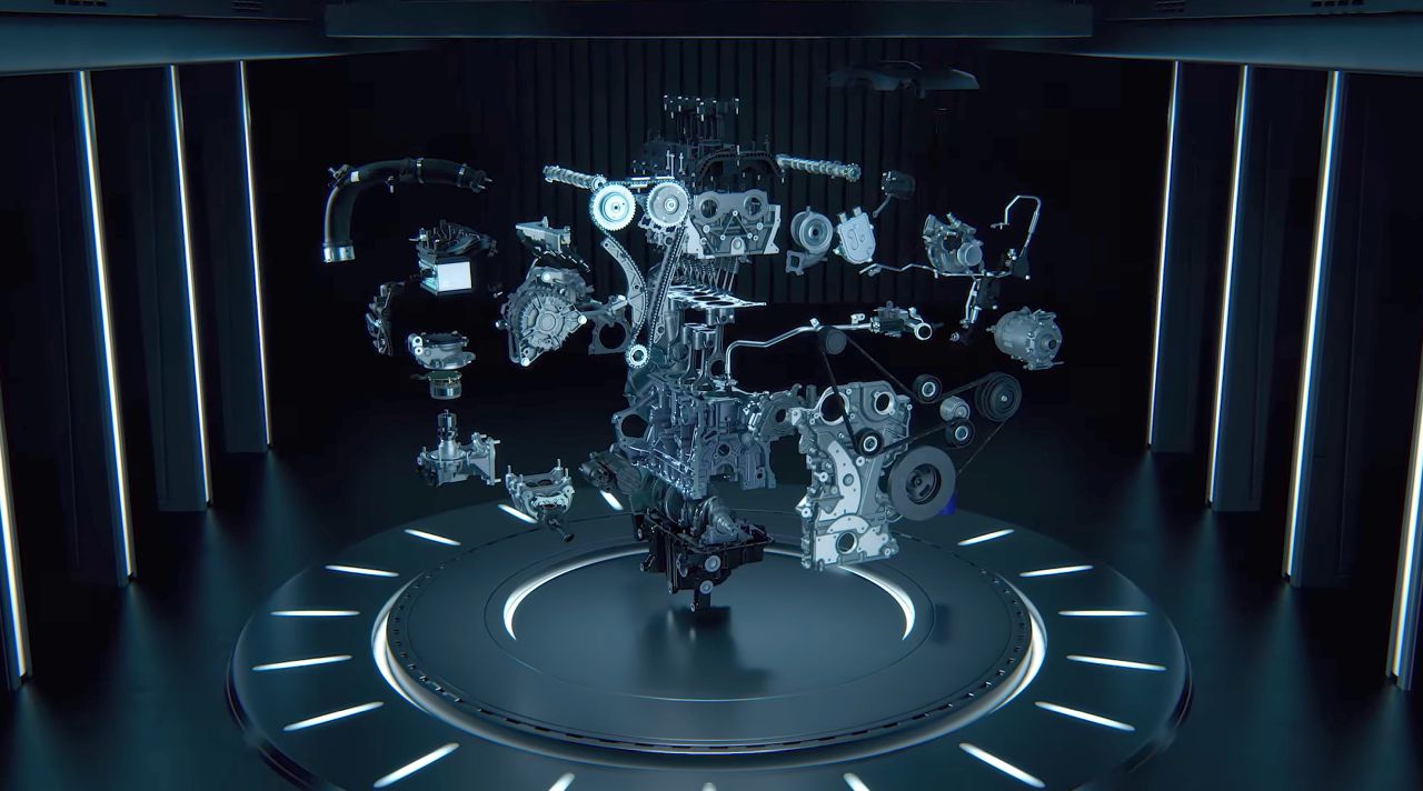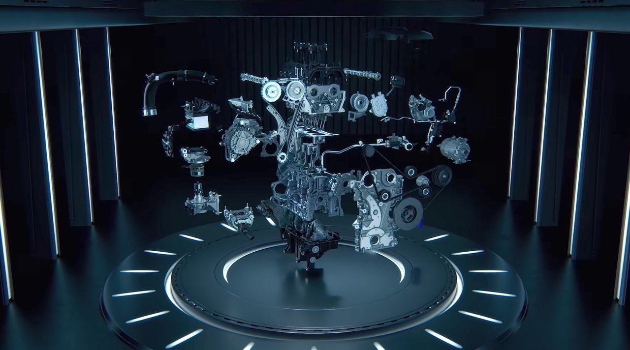 Motor má dve sviečky na valec, to ale nie je pointa. Jedna z nich pracuje klasicky, druhá s takzvaným „turbulent jet ignition“. Podstatné je, že táto sviečka je vložená do malej zalisovanej predkomôrky v hlave, do ktorej sa tiež dostane zmes paliva so vzduchom. Zapálenie benzínu v tomto priestore spôsobí, že sa plameň rozšíri do valca cez malé otvory rovnomerne do všetkých smerov, čo podľa konštruktérov pomáha zvyšovať efektivitu a zároveň znižuje emisie, vrátane oxidov dusíka.