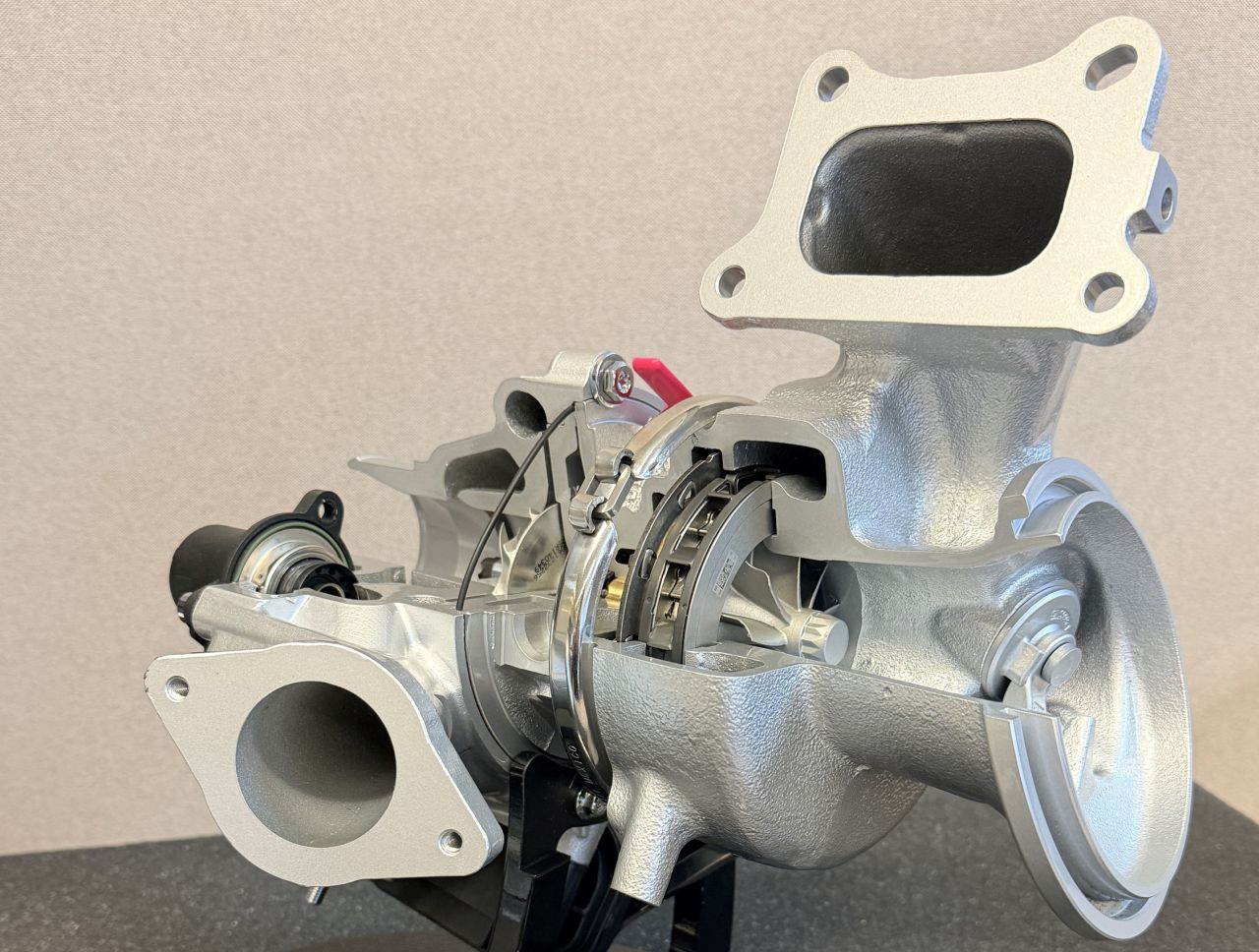 Samotné turbo pracuje s variabilnou geometriou rozvádzacích lopatiek, ale má tiež obtokový ventil kvôli rýchlejšiemu ohrievaniu katalyzátora. Do motora tlačí vzduch cez vodný medzichladič s maximálnym tlakom 2,41 baru a aj jemu jednotka vďačí za maximálny výkon 328 koní.