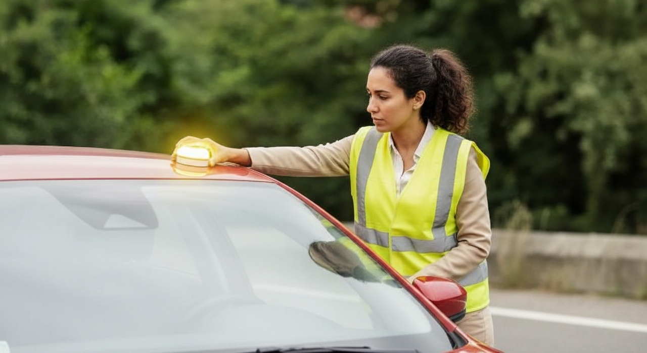 Nové výstražné svetlo V-16 je malé prenosné zariadenie na batérie, ktoré vodič jednoducho položí na strechu auta a aktivuje. Svetlo vydáva žlté, intenzívne blikajúce varovné znamenie viditeľné až na približne jeden kilometer, aj pri hmle, daždi či v noci.