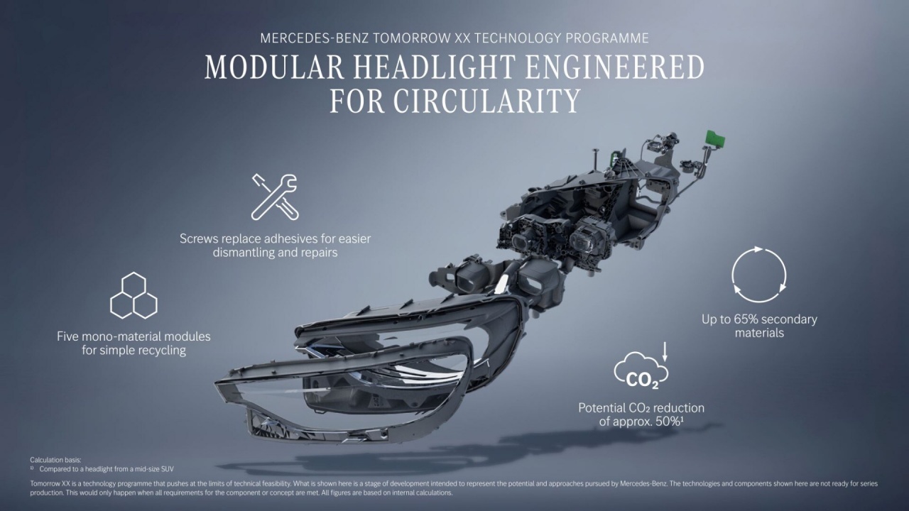 Tento "návrat k základom" má aj environmentálny rozmer. Zjednodušenie opráv znamená menej odpadu a nižšiu potrebu vyrábať nové svetlomety, čo podľa Mercedesu zníži emisie oxidu uhličitého. Automobilka plánuje, že v budúcnosti budú jednotlivé časti svetlometov vyrobené z jediného materiálu, čo zjednoduší recykláciu. Materiály získané zo starých svetlometov by sa potom mohli použiť pri výrobe nových.