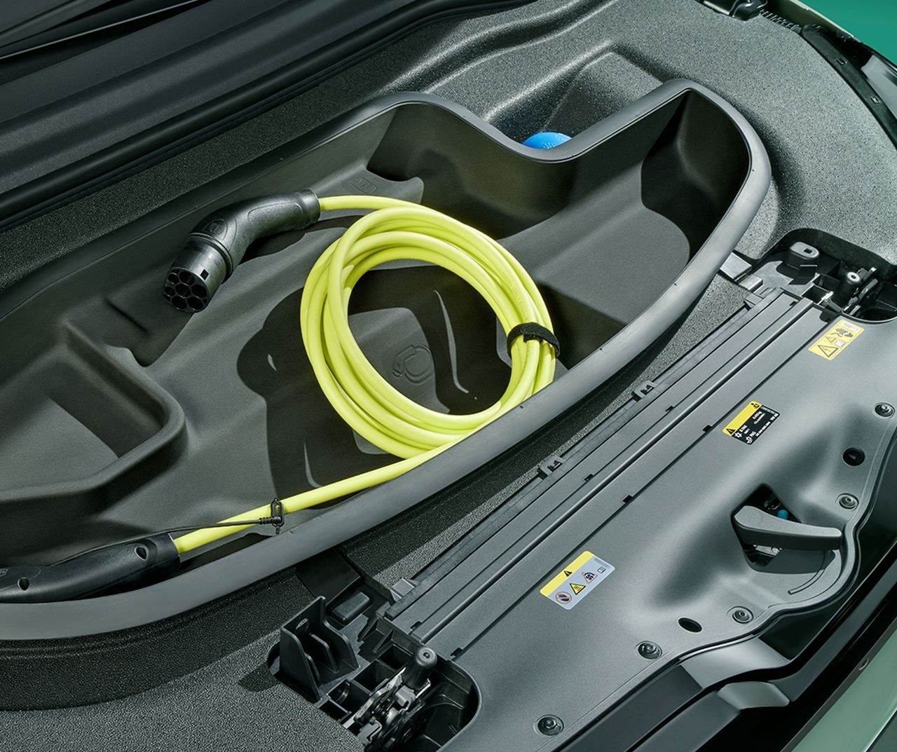Poďme na konkrétne detaily. Oba vylepšené modely získali síce malý, ale aspoň nejaký frunk, teda predný batožinový priestor. Má objem 21 litrov a podľa jednej z priložených fotografií by to malo stačiť aspoň na odloženie nabíjacieho kábla.