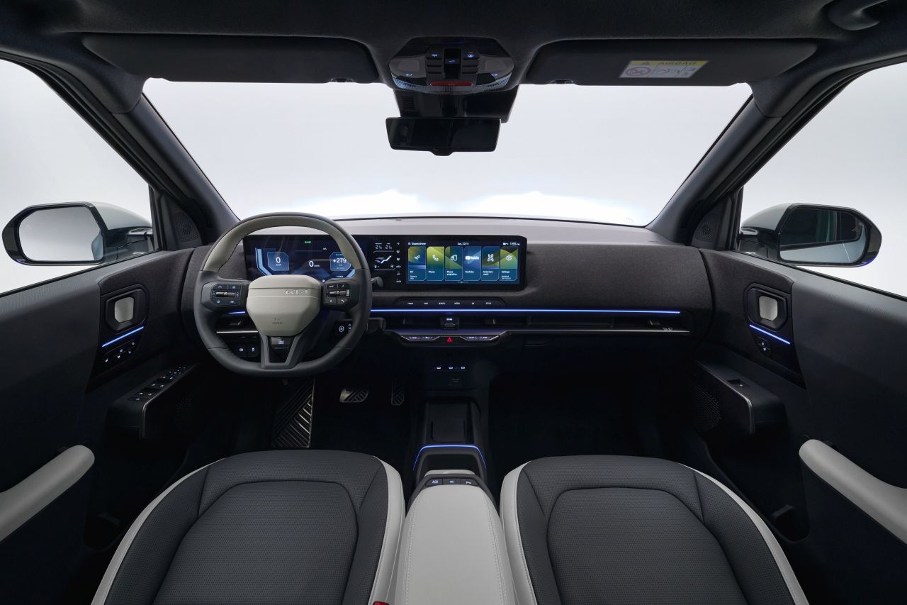 K sympatickým praktickým detailom patrí napríklad v pozdĺžnom smere posuvná zadná lavica, ktorá mení priestor pre kolená na zadných sedadlách od 885 do 958 mm. So sedadlami posunutými dopredu EV2 ponúkne batožinový priestor s objemom 403 litrov, ich odsunom dozadu potom 362 litrov. A pod prednou kapotou navyše nájdete 15-litrový frunk.