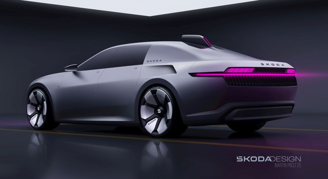 Martin Paclt sa rozhodol vynechať zadné okno, ako to dnes predvádzajú aj niektoré iné súčasné autá (napríklad Polestar), pričom nad líniu strechy vytiahol dutú plutvu. Jej nasávanie by sa malo starať o prísun chladiaceho vzduchu k elektromotoru, čo je asi trochu zbytočné, keďže napríklad Enyaq takto výrazný aerodynamický prvok nepotrebuje. Na druhej strane ale asi ide o zaujímavý nápad, ktorý virtuálny koncept dokáže zaujímavo ozvláštniť.