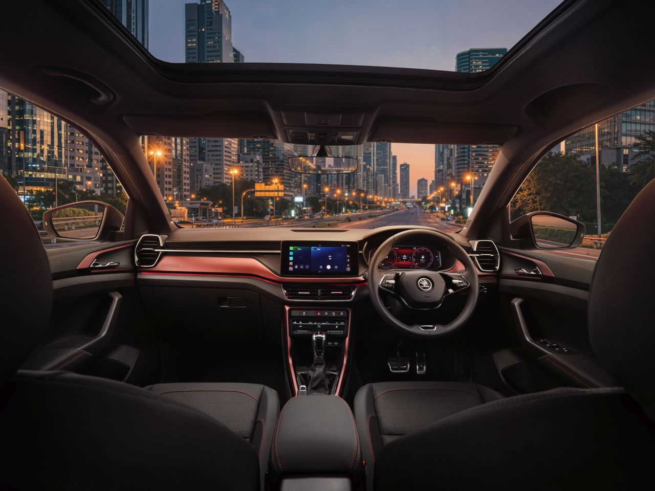 Dizajnéri do kabíny pridali tiež dvojfarebné ambientné osvetlenie, zväčšené panoramatické okno, prepracované čalúnenie a dekoračné prvky, ktoré vyniknú hlavne na novej verzii Kushaq Monte Carlo.