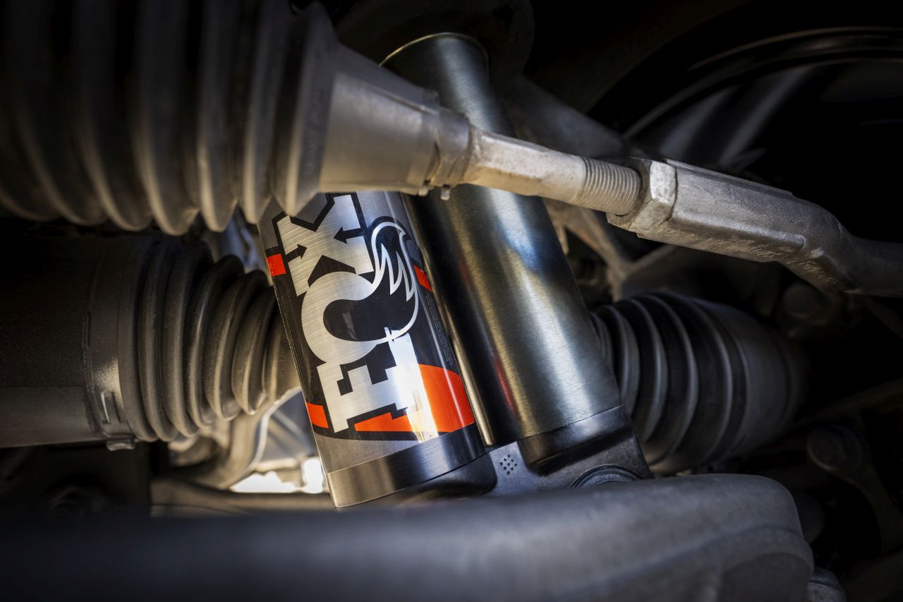 Nákupom tohto balíčka získate adaptívne tlmiče Fox s externými vyrovnávacími nádobami a pokročilým nastavovaním podvozka HOSS 3.0, navyše v spojení s ešte väčšími 35-palcovými terénnymi gumami Goodyear Territory RT s rozmerom 315/70 R17.