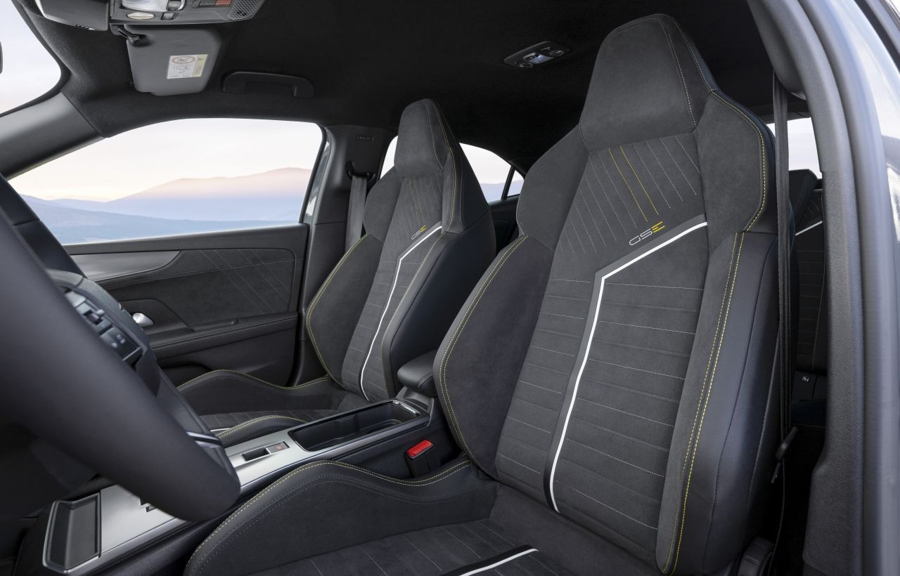 Štandardne s GSE dostanete tiež vrcholné svetlá Intelli-Lux Matrix, predné i zadné parkovacie senzory vzadu s kamerou, čalúnenie alcantarou, ktorej Opel hovorí TM Performance, pričom tento materiál nájdete nielen na nových športových sedadlách s vyhrievaním, ale dizajnéri ním čiastočne potiahli výplne vo dverách.
