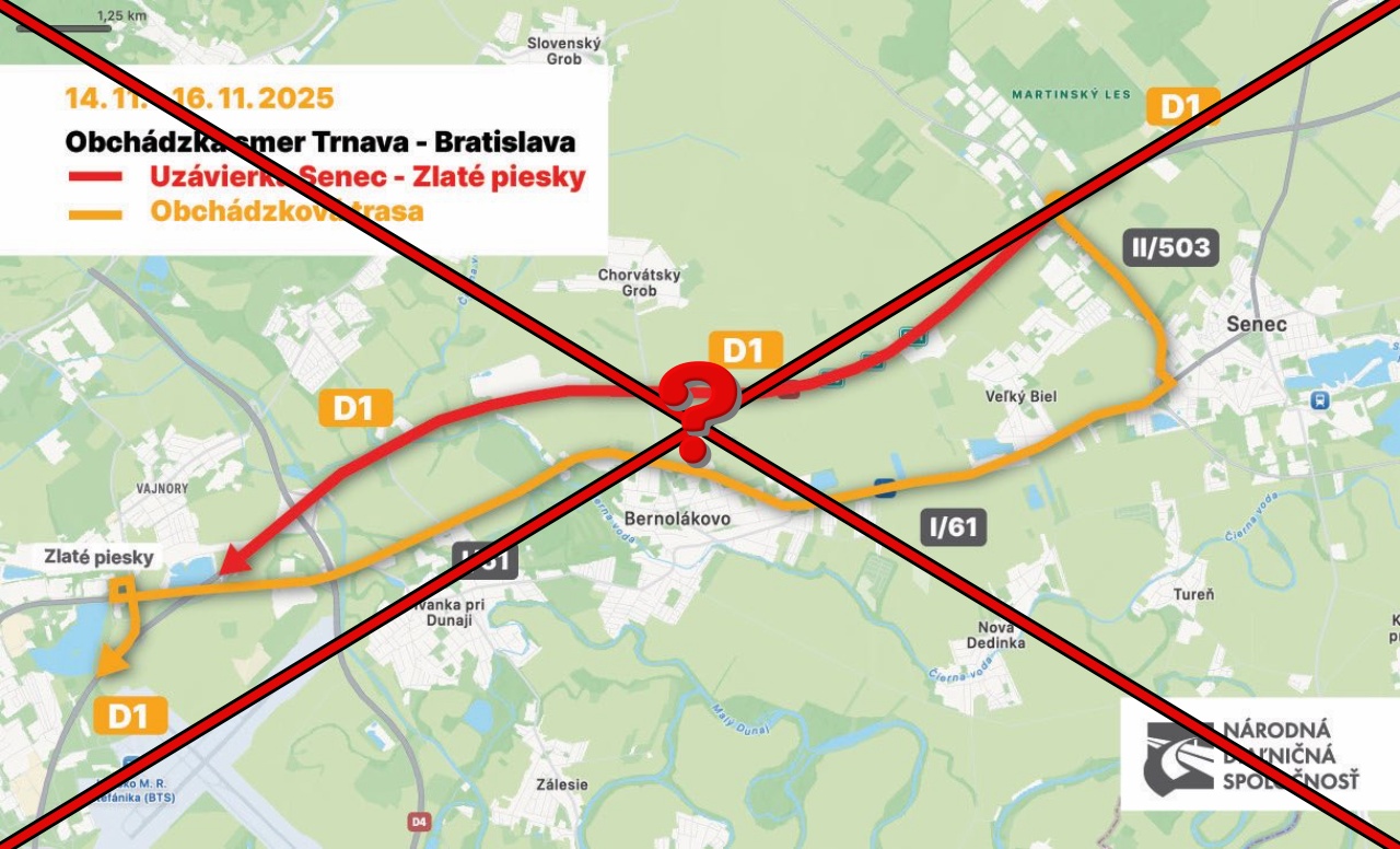 Národná diaľničná spoločnosť potvrdzuje, že k plánovanej uzávierke v avizovanom termíne nedôjde. Dôvodom odkladu je najmä aktuálne komplikovanejšia dopravná situácia v okolí Bratislavy, ktorú by uzávierka ešte zhoršila. Podrobnosti o tom, čo presne sa myslí výrazom „komplikovanejšia dopravná situácia,“ neboli bližšie špecifikované. Taktiež nie je známy náhradný termín realizácie týchto prác, o ktorom vás budeme samozrejme čo najskôr informovať.