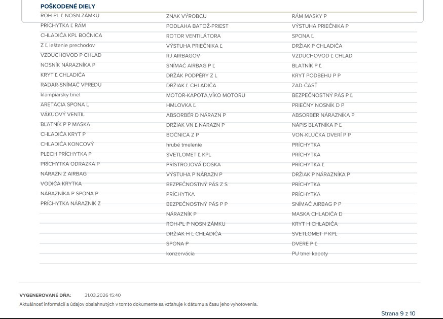 Tieto vypísané diely v Auto-Passe sú ale samozrejme len určené na výmenu, až reálne posúdenie môže ukázať, či boli aj vymenené, alebo len tmelné a rôzne pofidérne opravené.
