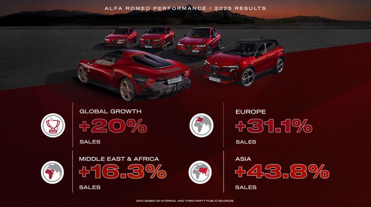 Viac než 80 % z tohto objemu pripadá na Európu, kde značka medziročne vyskočila o 31,1 %, pričom Veľká Británia narástla o 80,1 %, Francúzsko o 41,9 %, Taliansko o 20,7 %, Nemecko o 20,5 % a Španielsko o 15,1 %. Na domácom trhu je Alfa Romeo prémiovou značkou s najväčším rastom trhového podielu.