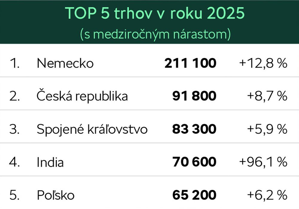 Ak nepočítame Čínu, český výrobca je v pluse na všetkých významných trhoch. Západná Európa poskočila predajmi medziročne o 11,4 percenta (599 300 áut), stredná Európa o 7 percent (205 500) a východná Európa o necelých 6 percent (53 800). Relatívne úspešná je Škoda aj v Indii, kde zvýšila čísla o 96,1 percenta, aj keď v absolútne má na lídrov trhu ešte ďaleko, predala 70 600 vozidiel.
