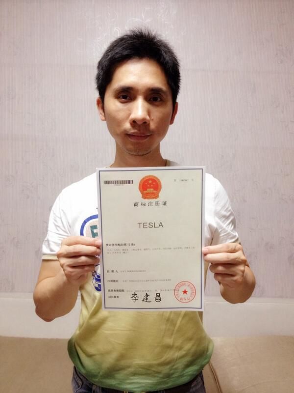 Čan Pao-šeng s ochrannou známkou na názov Tesla
