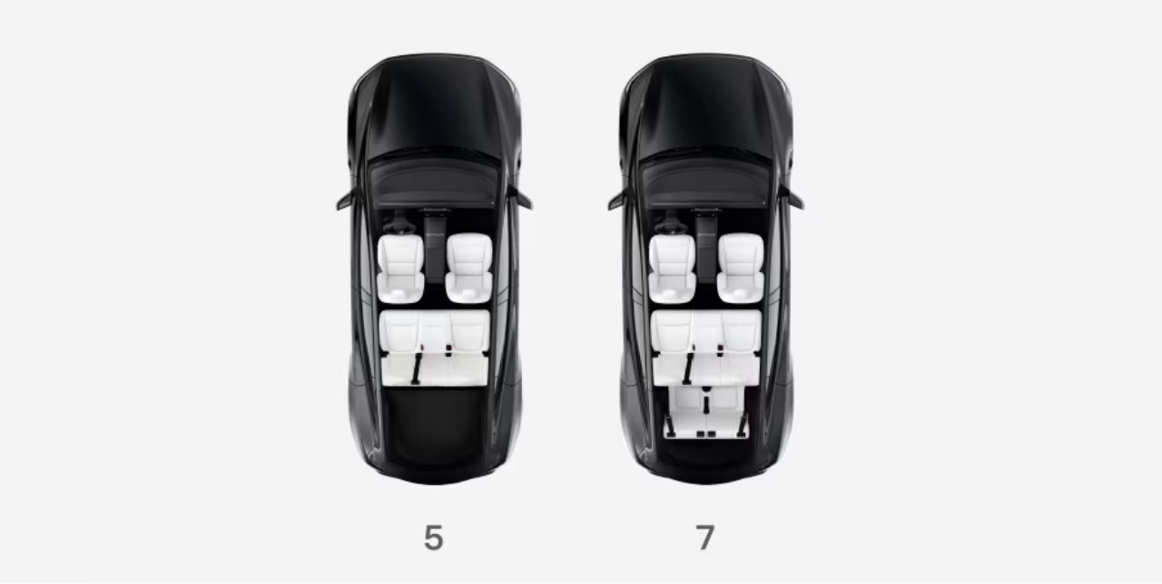 7-miestny Model Y má tretí rad sedadiel pridaný do rovnakej karosérie s rovnakým rázvorom ako bežný Model Y, takže reálny priestor v treťom rade je skôr vhodný pre deti alebo kratšie presuny.