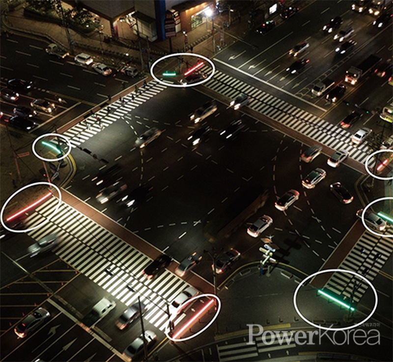 Týmto spôsobom dosiahli to, že chodec, aj keď sa pozerá do mobilu, tak vidí v periférnom videní okolo mobilu, červený alebo zelený signál. Niekde zelený signál ku koncu časového úseku určeného pre chodcov začne blikať, až ho nahradí červený. Výsledkom je menej stretov medzi chodcami a vozidlami.