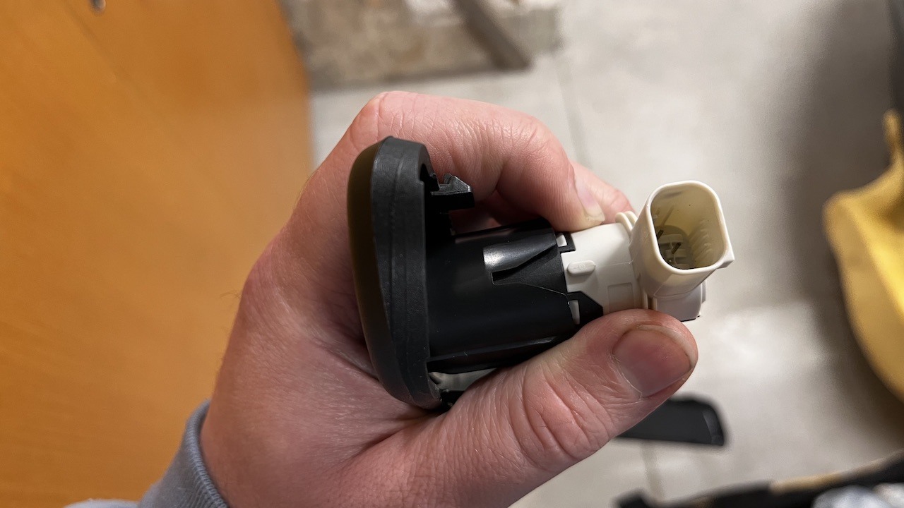 Potom, čo som nárazník ako tak nalakoval, mi už nič nebránilo začať všetko skladať. Najprv prišiel na rad samotný snímač automatického nastavenia výšky svetiel, ktorý mal zlomenú tyčku. Odskrutkovať staré a naskrutkovať nové nie je nič náročné. Našťastie neboli poškodené ani drôty, ani konektor a netreba tiež nič kódovať.