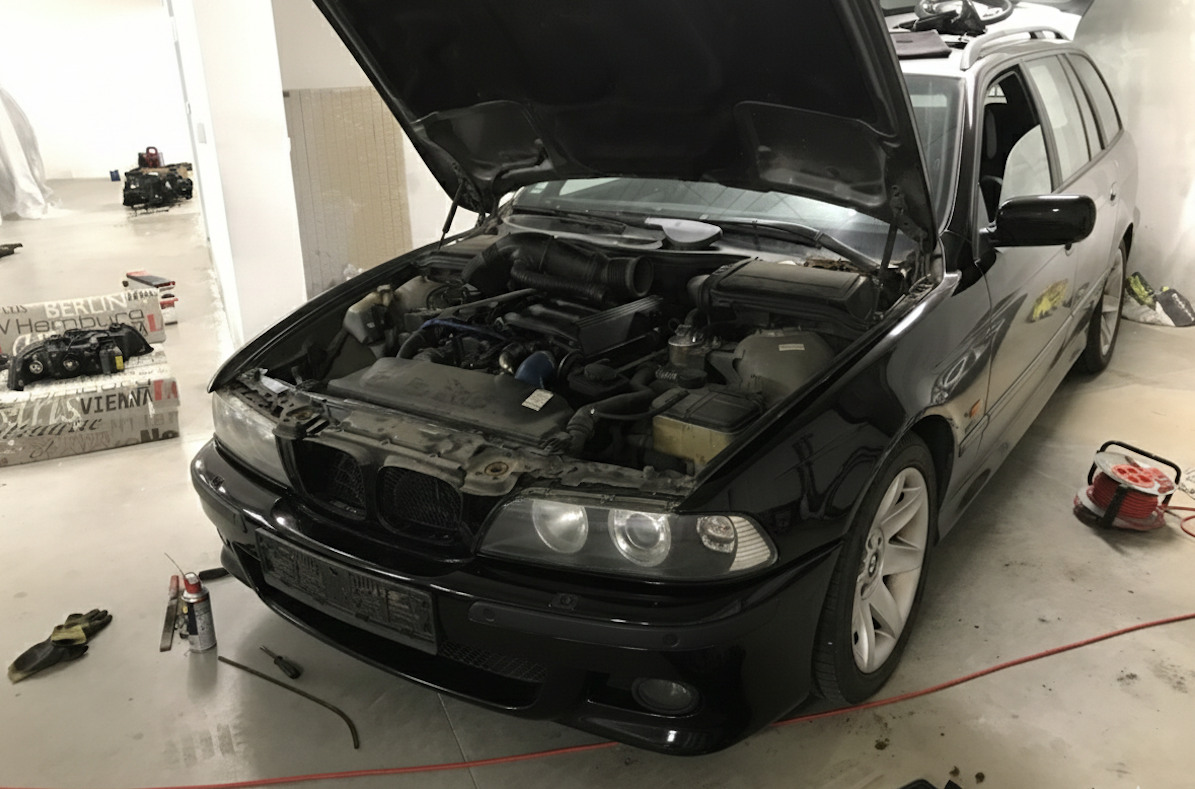 Ešte predtým, než som začal s inštaláciou nárazníka a plastových podbehov, pustil som sa do prehodenia predných svetiel. Nakoniec som to vyriešil takto. Na Alpine mám tie isté svetlomety, ktoré by si časom tiež zaslúžili refresh. Keďže je to ale cennejšie auto a rád by som ho mal v lepšom stave, rozhodol som sa svetlá z nej prehodiť na tento čierny kombík a nové halogény pôjdu nakoniec na Alpinu. Keď sa Osram rozhýbe a spraví homologizáciu na LED H7 aj pre tento model, tak tam vložím diódy a pri zapnutých svetlách nebude rozdiel voči xenónu už žiaden. Keďže s týmto autom jazdím len v peknom počasí a mám naprogramované denné svietenie, tak ich budem aj tak zapínať len raz za dva roky pri TK.