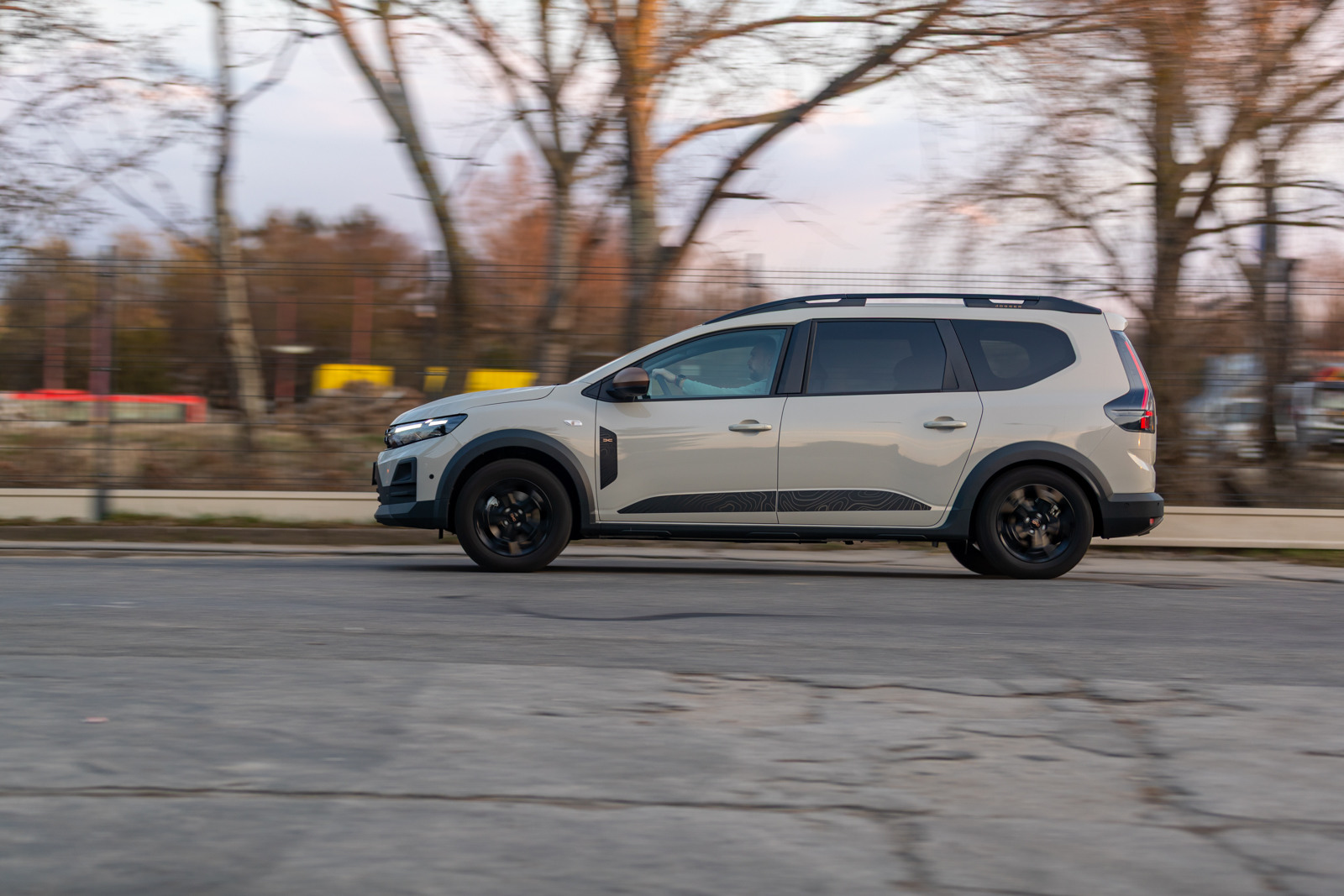 Cestujúci vzadu ocenia sklopné stolíky na operadlách predných sedadiel – na tablet, rýchle občerstvenie alebo hračky pre deti. Detail, ktorý pri dlhších cestách poteší. Zadné dvere sa otvárajú do veľkého uhla, takže nastupovanie aj nakladanie dieťaťa do sedačky je výrazne pohodlnejšie než v mnohých „štýlových“ SUV. Odkladacích priestorov nie je veľa, Dacia ako prakticky orientovaná značka by ich zniesla kľudne viac. Stredová lakťová opierka by si zaslúžila väčší objem, keďže práve rodinné auto býva plné káblikov, hračiek, vreckoviek, fliaš a iných drobností.